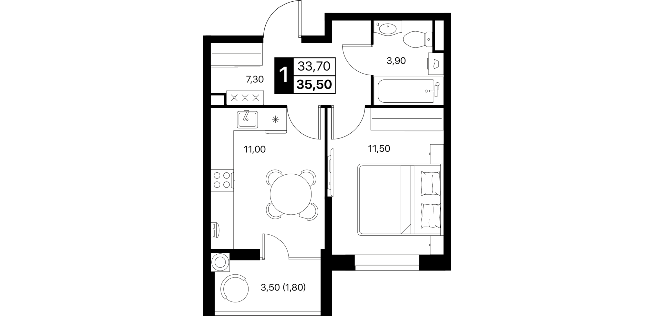 Чистый лист для вашего дизайна. Потолки покрашены, стены выровнены под обои, на полу аккуратный ковролин; электрика разведена, установлен базовый свет. Санузел собран (ванна, унитаз, раковина) — въезжайте и доводите интерьер без пыли и черновых работ.