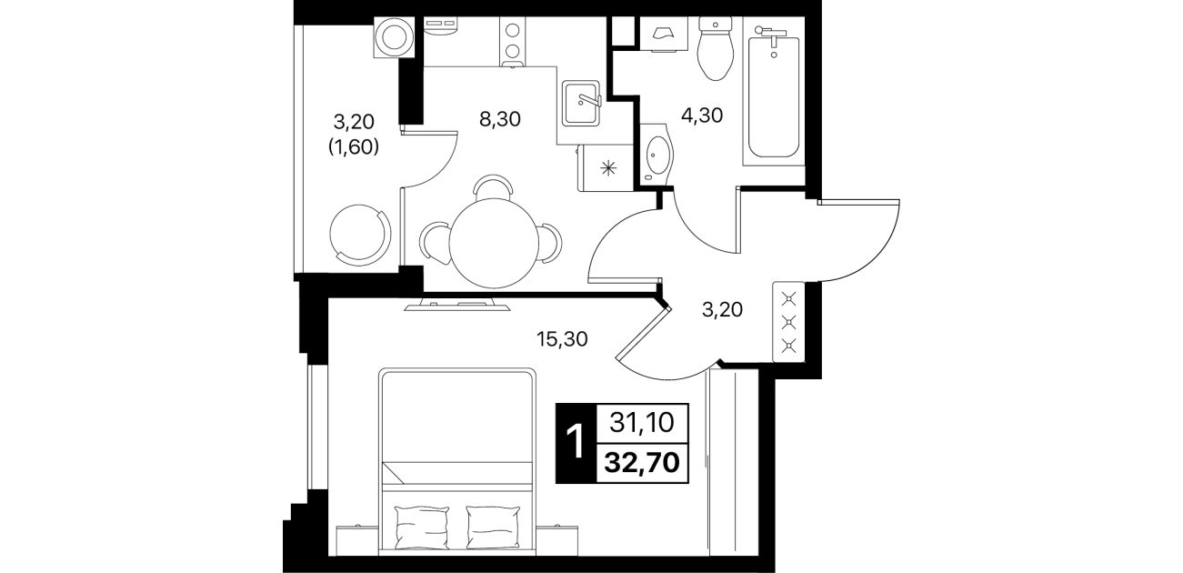 Чистый лист для вашего дизайна. Потолки покрашены, стены выровнены под обои, на полу аккуратный ковролин; электрика разведена, установлен базовый свет. Санузел собран (ванна, унитаз, раковина) — въезжайте и доводите интерьер без пыли и черновых работ.