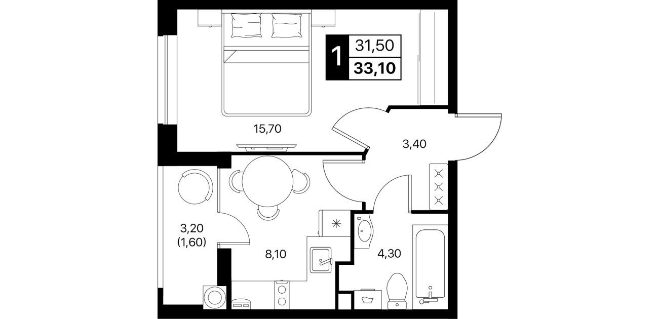 Чистый лист для вашего дизайна. Потолки покрашены, стены выровнены под обои, на полу аккуратный ковролин; электрика разведена, установлен базовый свет. Санузел собран (ванна, унитаз, раковина) — въезжайте и доводите интерьер без пыли и черновых работ.