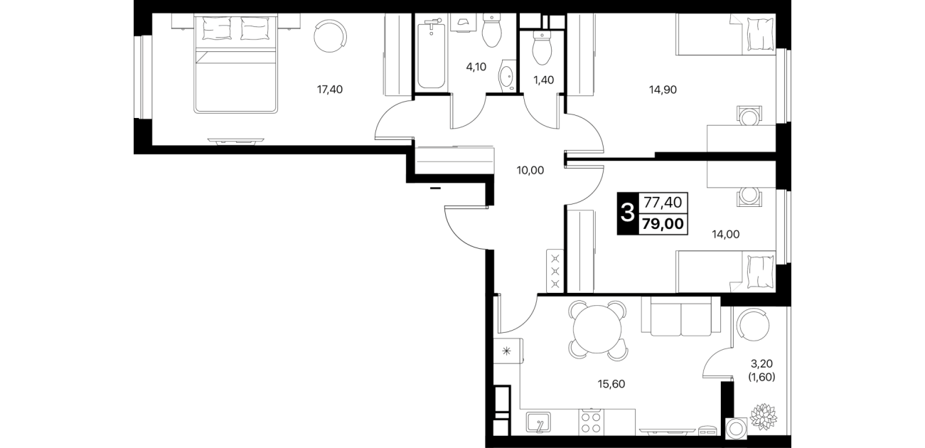 В пакет входит кухня, тюль, корпусная и мягкая мебель, сплит-системы и вся необходимая бытовая техника.