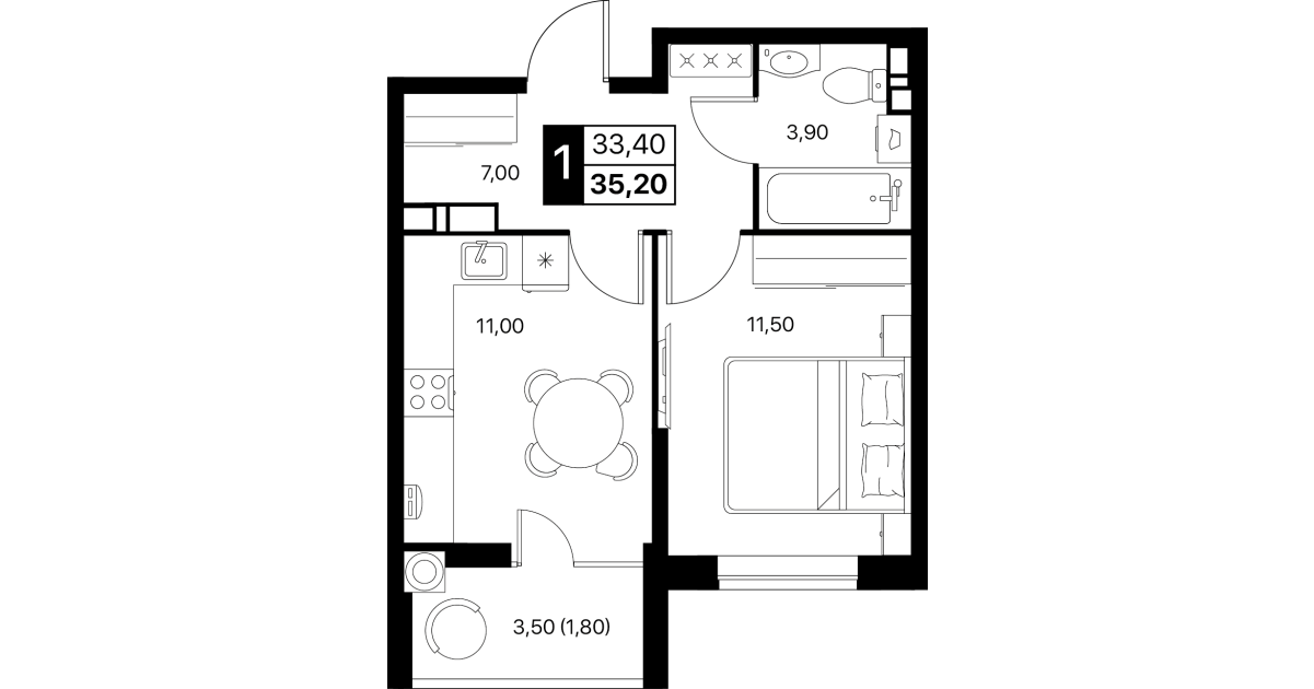 Чистый лист для вашего дизайна. Потолки покрашены, стены выровнены под обои, на полу аккуратный ковролин; электрика разведена, установлен базовый свет. Санузел собран (ванна, унитаз, раковина) — въезжайте и доводите интерьер без пыли и черновых работ.