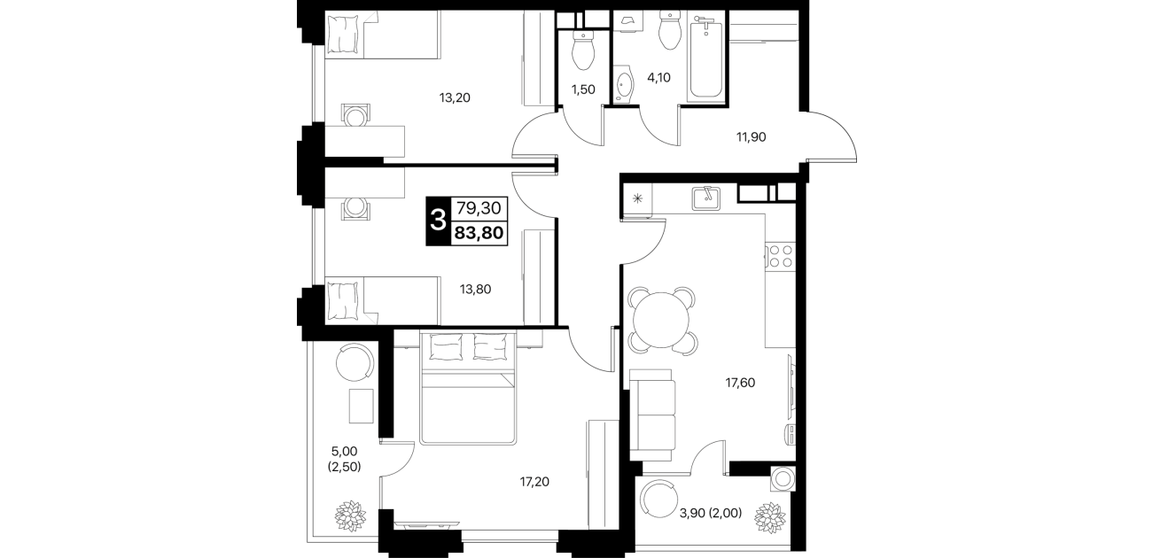 В пакет входит кухня, тюль, корпусная и мягкая мебель, сплит-системы и вся необходимая бытовая техника