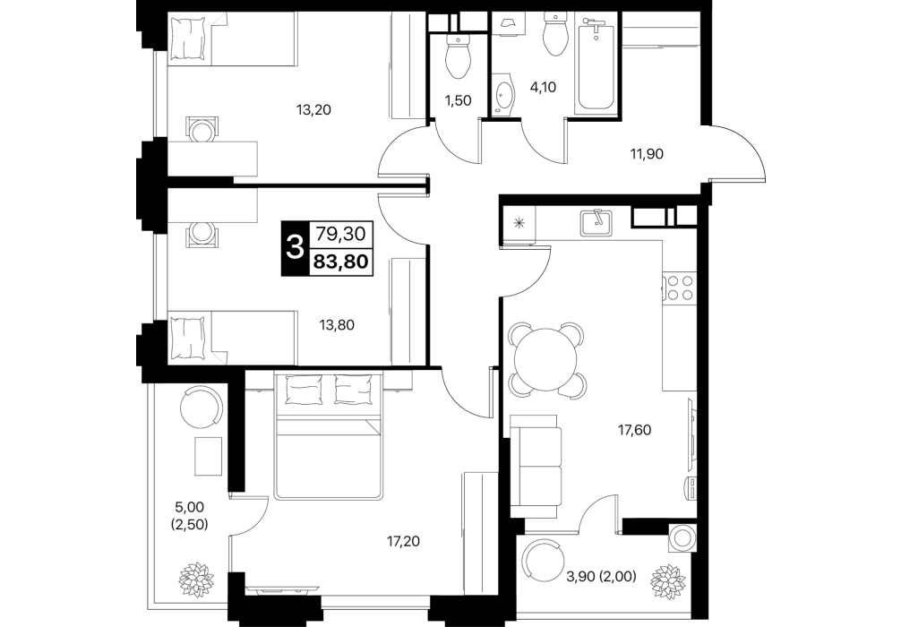 Чистый лист для вашего дизайна. Потолки покрашены, стены выровнены под обои, на полу аккуратный ковролин; электрика разведена, установлен базовый свет. Санузел собран (ванна, унитаз, раковина) — въезжайте и доводите интерьер без пыли и черновых работ.