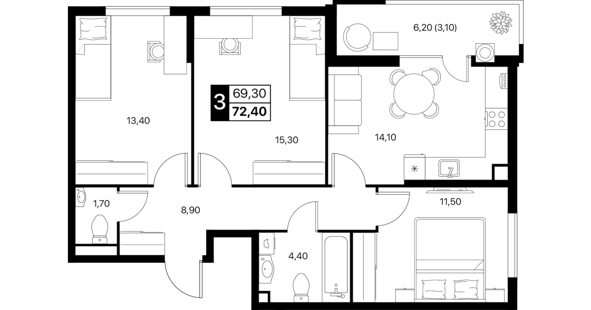 - Жилые комнаты