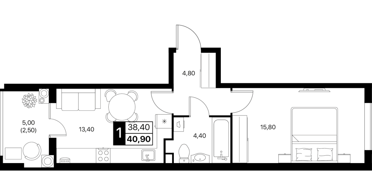 В пакет входит кухня, тюль, корпусная и мягкая мебель, сплит-системы и вся необходимая бытовая техника