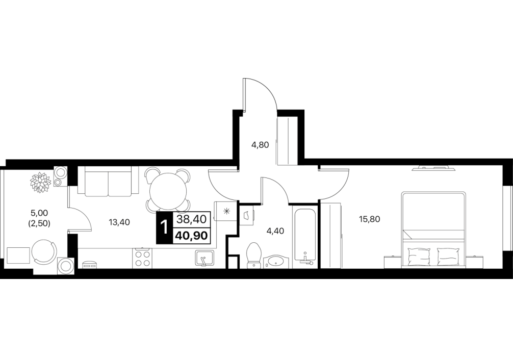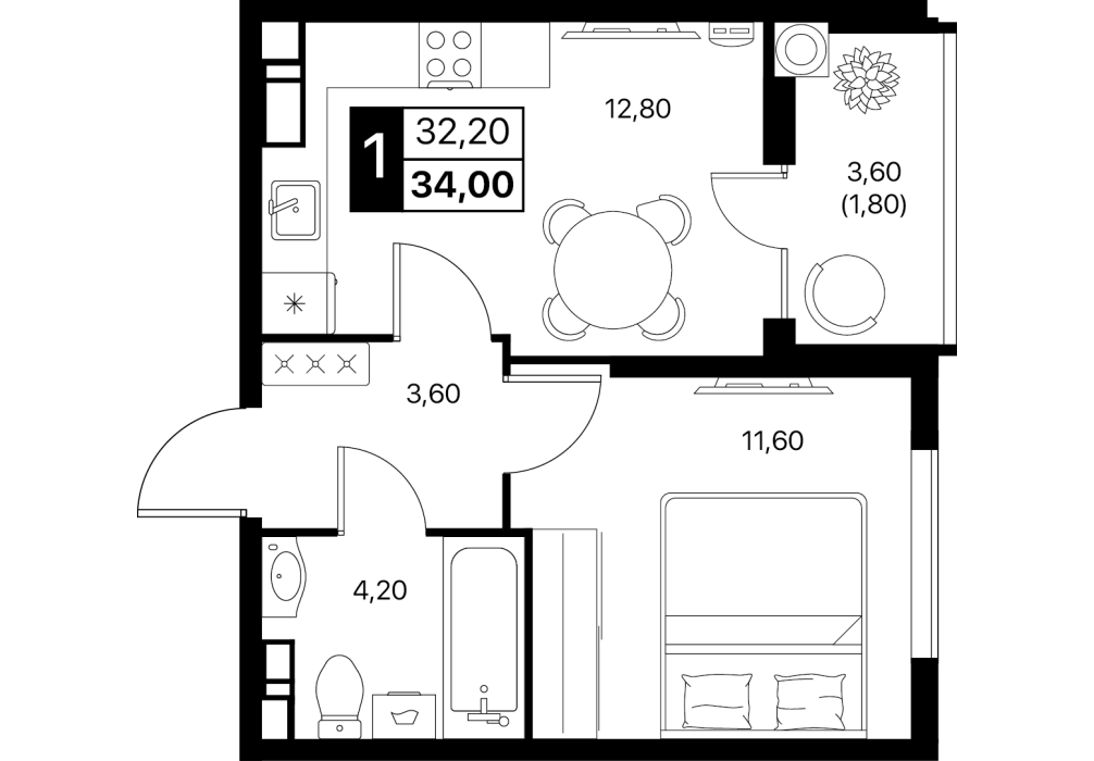 Чистый лист для вашего дизайна. Потолки покрашены, стены выровнены под обои, на полу аккуратный ковролин; электрика разведена, установлен базовый свет. Санузел собран (ванна, унитаз, раковина) — въезжайте и доводите интерьер без пыли и черновых работ.