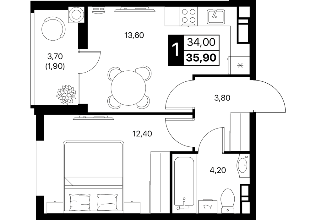 Чистый лист для вашего дизайна. Потолки покрашены, стены выровнены под обои, на полу аккуратный ковролин; электрика разведена, установлен базовый свет. Санузел собран (ванна, унитаз, раковина) — въезжайте и доводите интерьер без пыли и черновых работ.