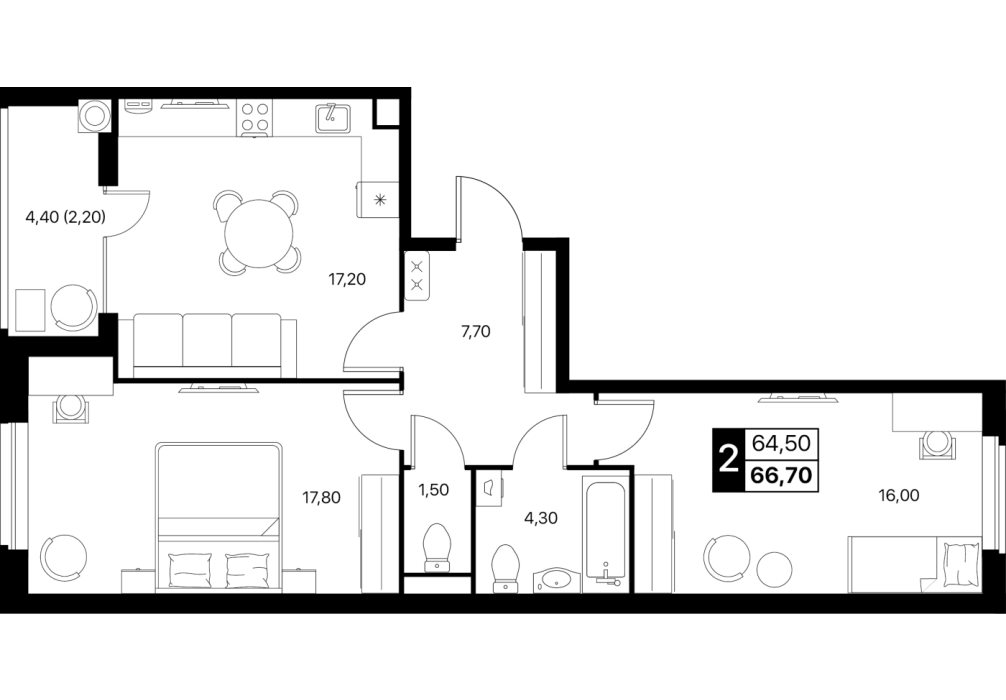 Чистый лист для вашего дизайна. Потолки покрашены, стены выровнены под обои, на полу аккуратный ковролин; электрика разведена, установлен базовый свет. Санузел собран (ванна, унитаз, раковина) — въезжайте и доводите интерьер без пыли и черновых работ.