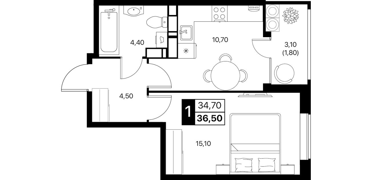 В пакет входит кухня, тюль, корпусная и мягкая мебель, сплит-системы и вся необходимая бытовая техника.