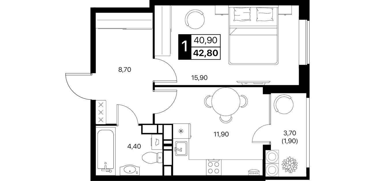 В пакет входит кухня, тюль, корпусная и мягкая мебель, сплит-системы и вся необходимая бытовая техника.