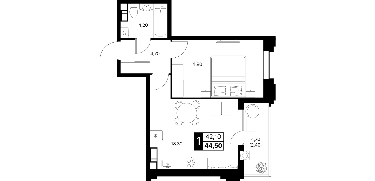 В пакет входит кухня, тюль, корпусная и мягкая мебель, сплит-системы и вся необходимая бытовая техника.