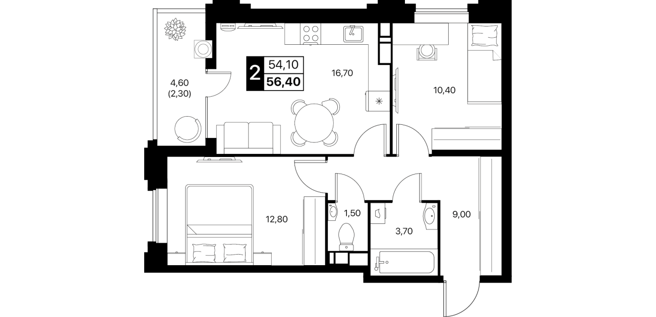 В пакет входит кухня, тюль, корпусная и мягкая мебель, сплит-системы и вся необходимая бытовая техника.