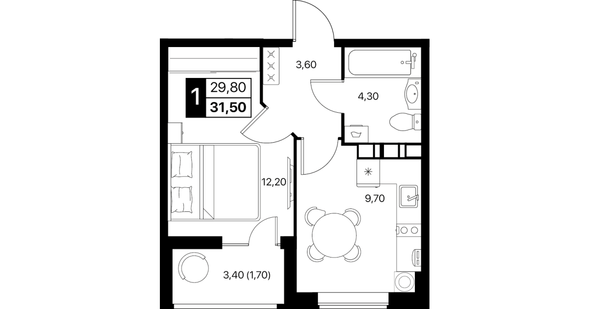 1-комнатная квартира: 31,5 м²