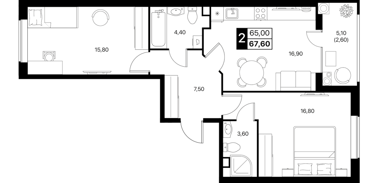 В пакет входит кухня, тюль, корпусная и мягкая мебель, сплит-системы и вся необходимая бытовая техника.