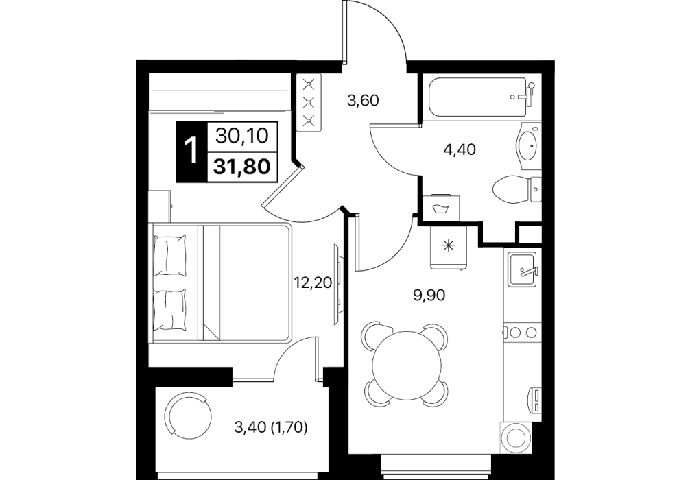 Чистый лист для вашего дизайна. Потолки покрашены, стены выровнены под обои, на полу аккуратный ковролин; электрика разведена, установлен базовый свет. Санузел собран (ванна, унитаз, раковина) — въезжайте и доводите интерьер без пыли и черновых работ.