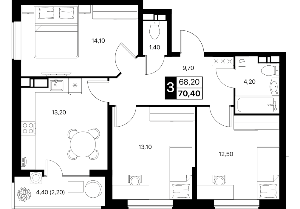 В пакет входит кухня, тюль, корпусная и мягкая мебель, сплит-системы и вся необходимая бытовая техника.