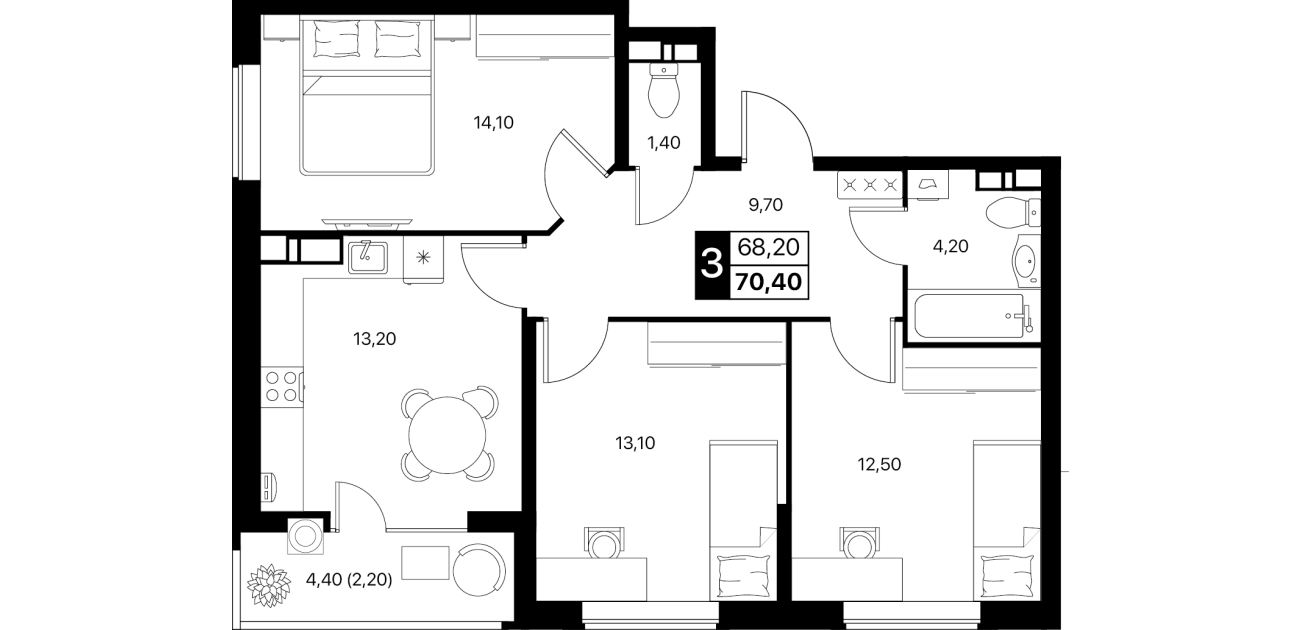 В пакет входит кухня, тюль, корпусная и мягкая мебель, сплит-системы и вся необходимая бытовая техника.