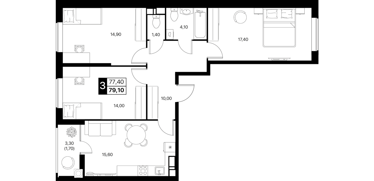 В пакет входит кухня, тюль, корпусная и мягкая мебель, сплит-системы и вся необходимая бытовая техника