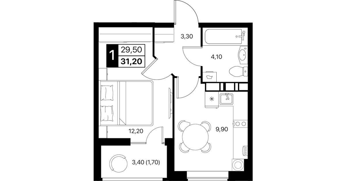 1-комнатная квартира: 31,2 м²